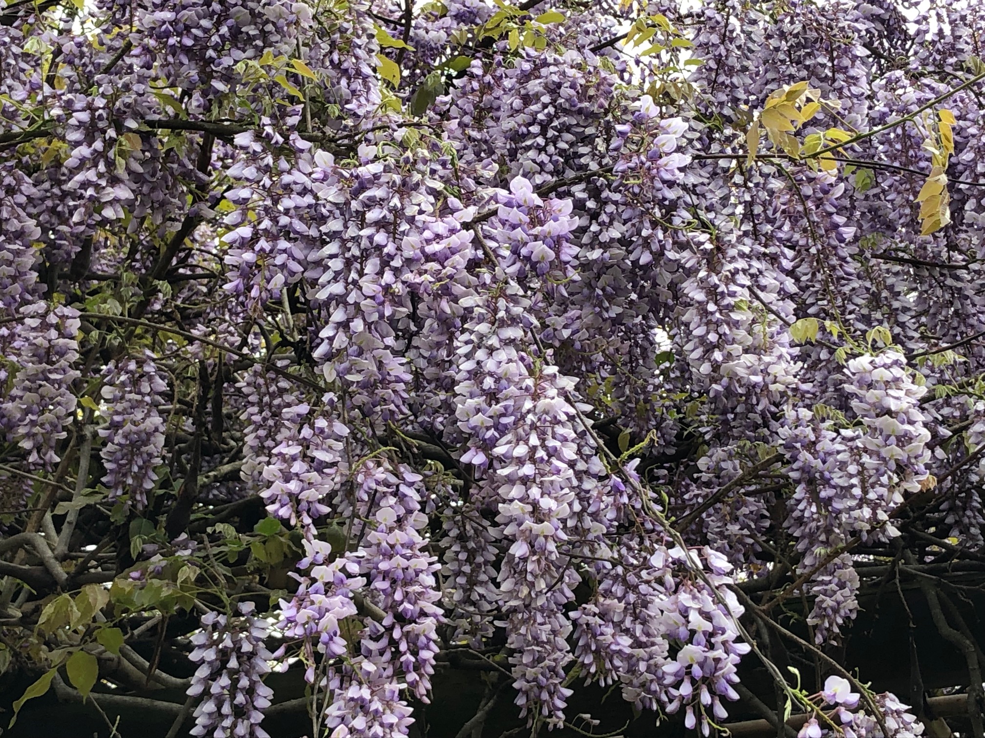 中国原産のフジ属の一種で、中国名は「紫藤」。日本のフジに比べて花がやや大きく、また、つるの巻き方が日本のフジとは逆で、上から見たとき反時計回りに巻きつく性質があります。