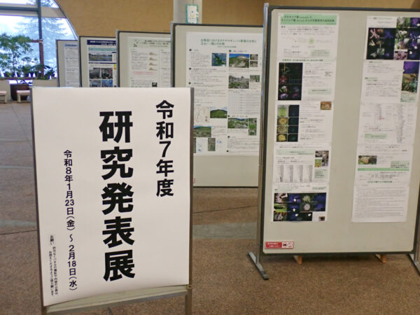 当園の研究発表展を下記のとおり開催しています。当園職員の研究成果についてポスターや写真、実物を使ってわかりやすく展示しています。