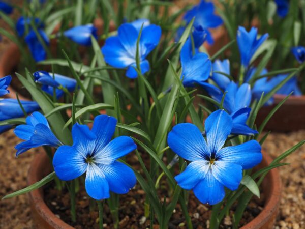 「アンデスの青い星」と呼ばれるテコフィラエア・キアノクロクスが最盛期を迎えています。この植物は、南米チリのアンデス高原に分布するテコフィラエア科の球根植物です。学名の「キアノクロクス」は青いクロッカスの意味です。花の中心部分は白く、淡い芳香があります。高山・絶滅危惧植物室の春を告げる代名詞となっています。見頃は、3月上旬までです。
